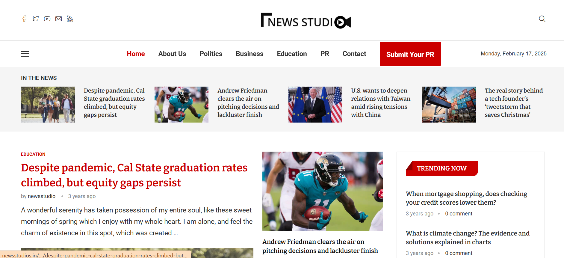 News Studios is an online platform dedicated to delivering a wide range of news and information across various sectors, including politics, business, education, and public relations. The website aims to provide unbiased and comprehensive news coverage to its audience.