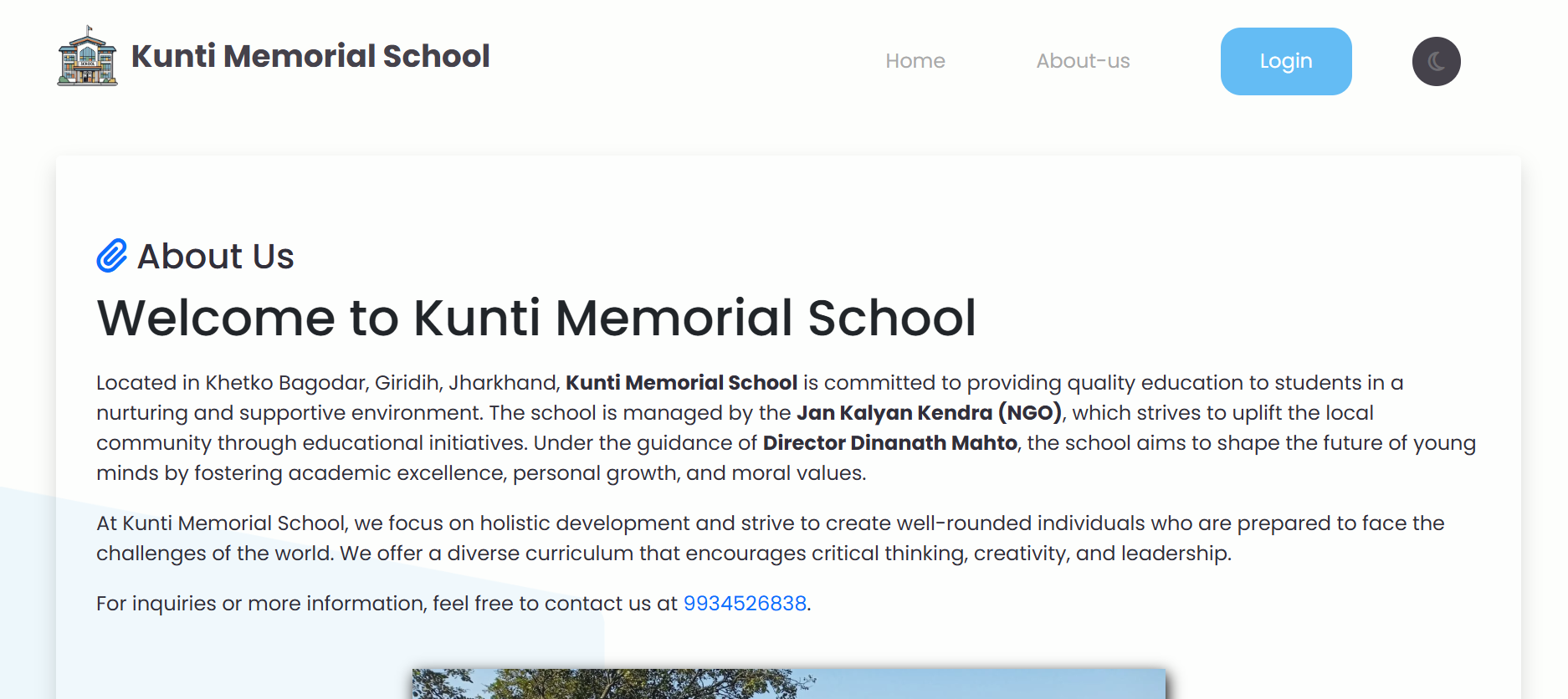 The School Management Application is a comprehensive digital solution designed to automate and simplify school operations. This system allows seamless interaction between admin, staff, teachers, students, bus service, and syllabus management. It ensures efficient handling of student records, attendance, timetable scheduling, examination management, fee payment, and transport tracking. The application enhances the education system by providing a user-friendly interface for all stakeholders, making school operations more effective and organized.